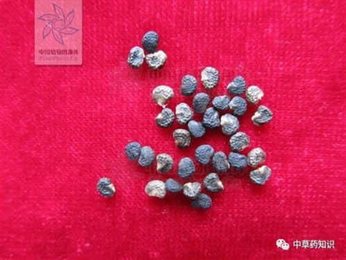 曼陀罗籽呈肾形,稍扁平,表面灰褐色或黑褐色,用手摩挲有不规则隆起,具有细密的点状小坑背侧弓形隆起,腹侧下方具一楔形种脐,中间为一裂口状种孔。